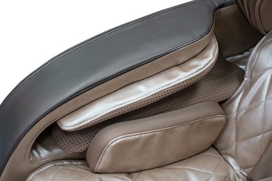- Удлинённая L-образная каретка позволяет полностью разложить кресло и лежать на нём, как на кровати. Массажный механизм идеально проходит изгибы тела, обеспечивает тщательный и глубокий роликовый массаж шеи, плеч, поясницы и ягодиц.