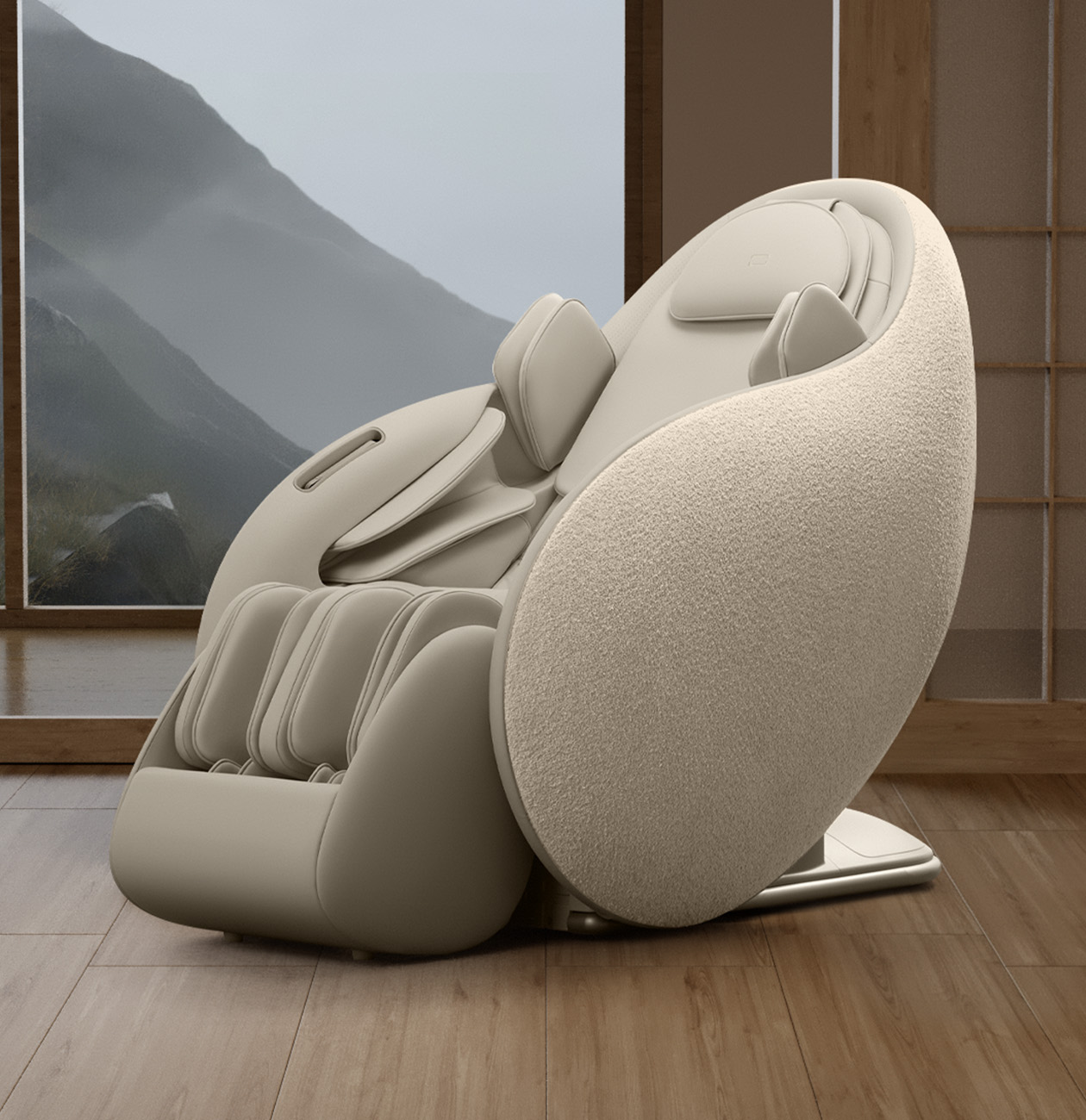 Первое и единственное массажное кресло в базовом белом оттенке, которое выступает полноценным элементом мебели. Для модели предусмотрены сменные боковые панели с разным оттенком и типом ткани для гармоничного сочетания с интерьером.