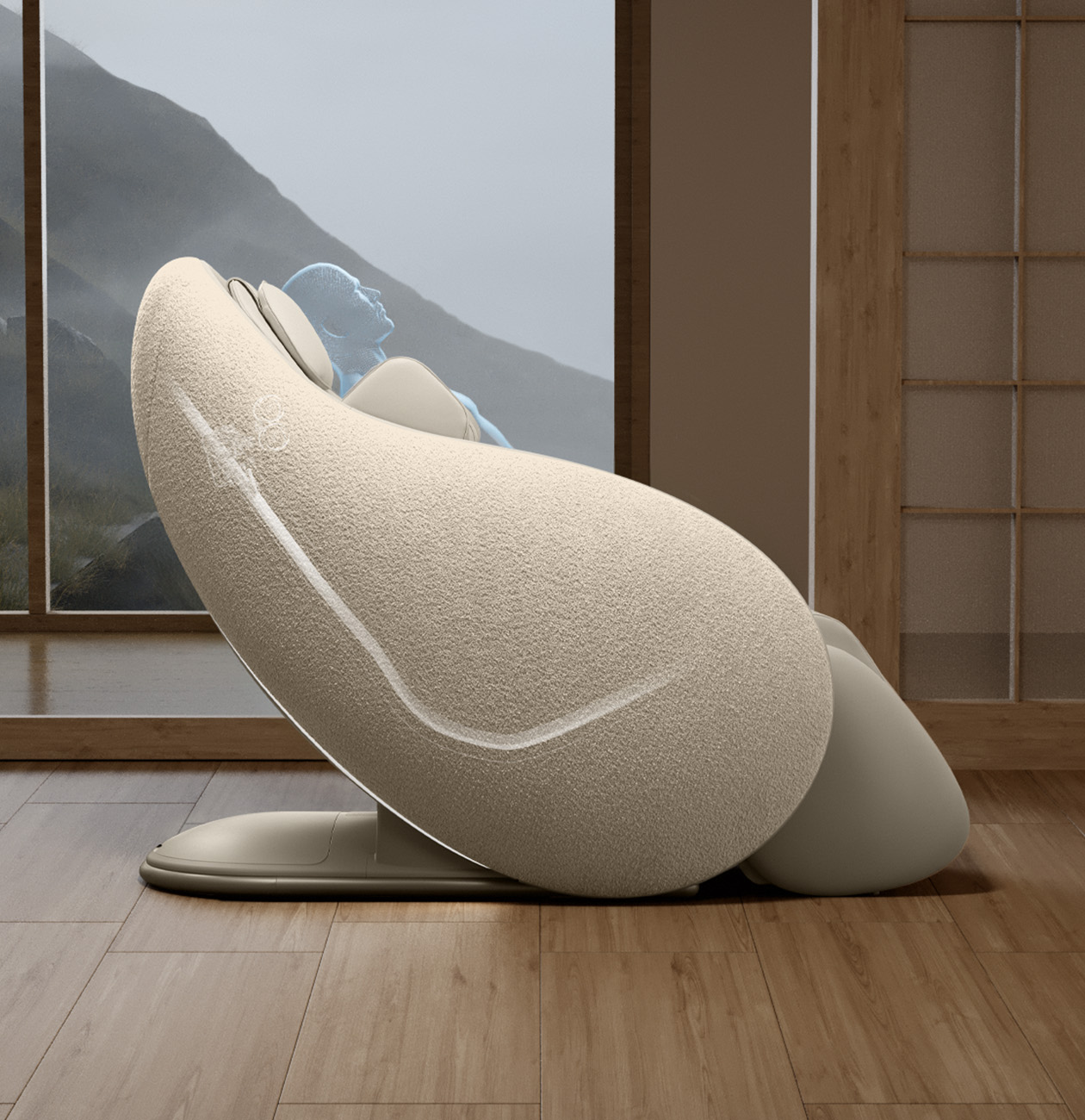 Кресло автоматически регулирует наклон ног и спинки, достигая угла в 150°. В положении Zero G тело находится в максимально расслабленном состоянии: минимизируется нагрузка на позвоночник и суставы, улучшается кровообращение, снимаются мышечные зажимы.