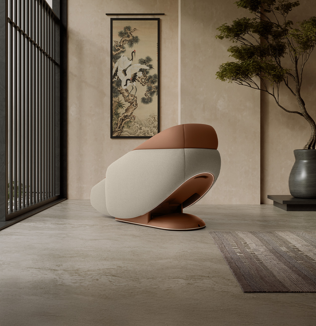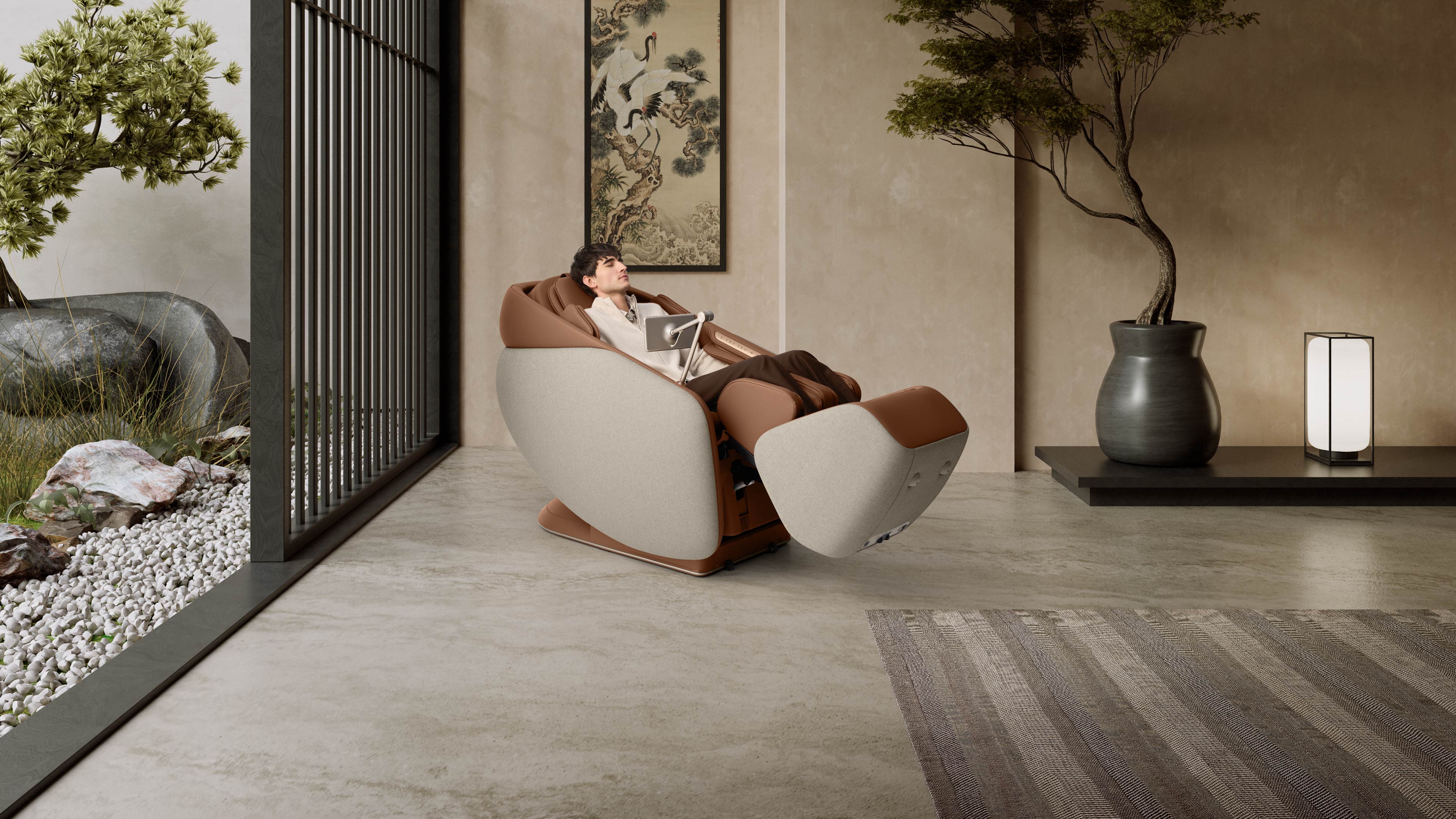 Модель идеально встраивается в любой интерьер, создавая вокруг себя полноценное wellness-пространство. Мягкий текстильный корпус позволяет сочетать кресло с другими элементами мебели.