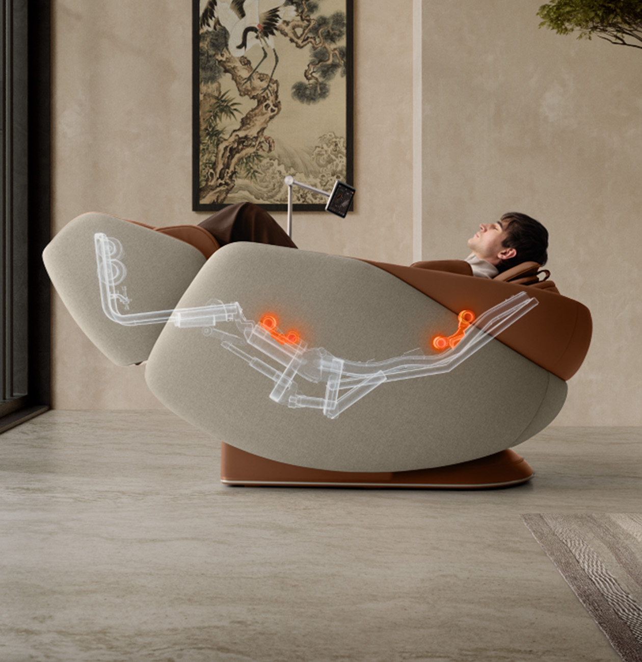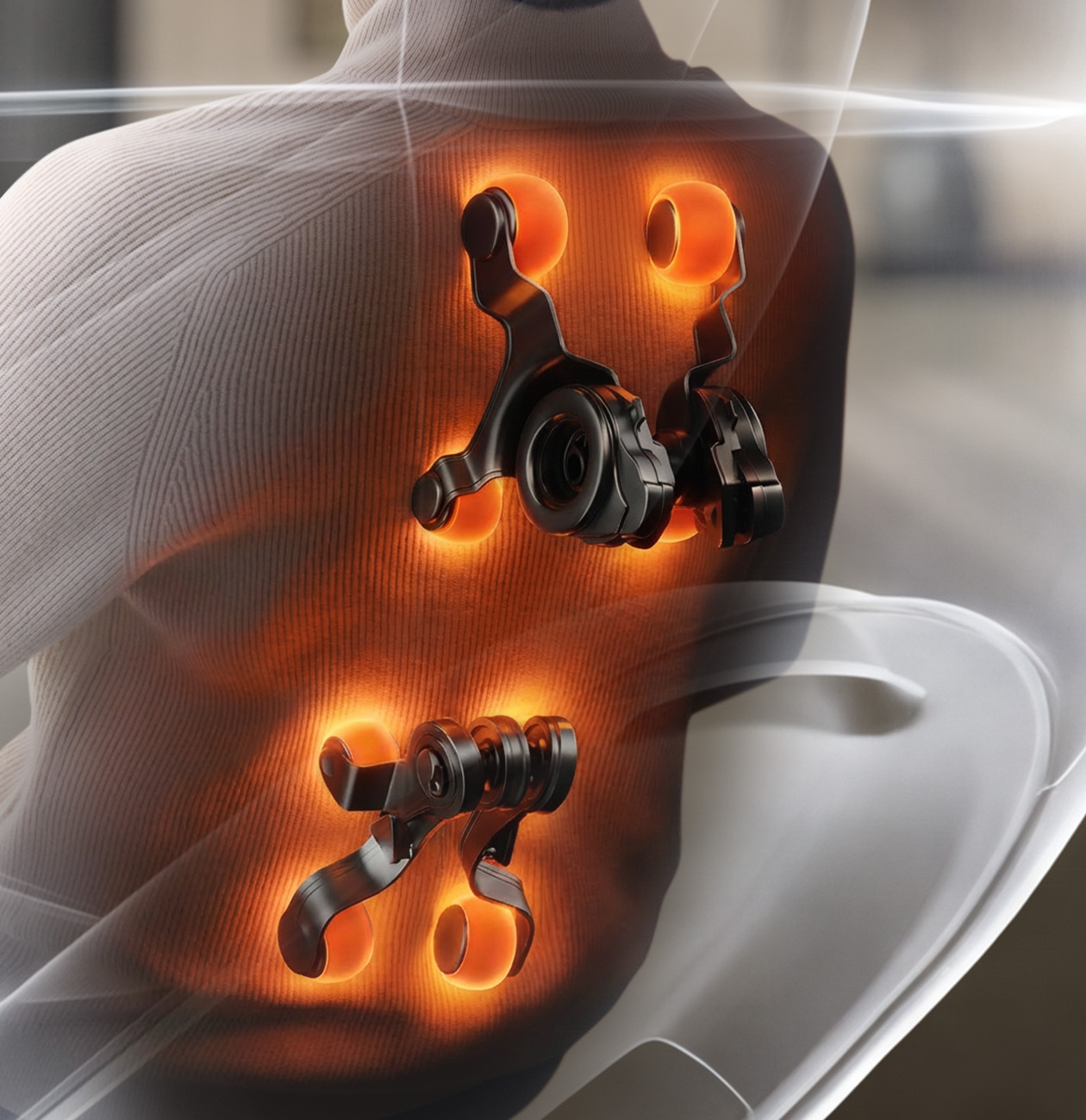 Технология Spinetech сканирует позвоночник в 9 ключевых точках и адаптирует программу массажа под индивидуальные особенности тела. Технология Thermotech прогревает массажные ролики, создавая эффект горячей стоун-терапии, которая снимает боль и напряжение в мышцах.
