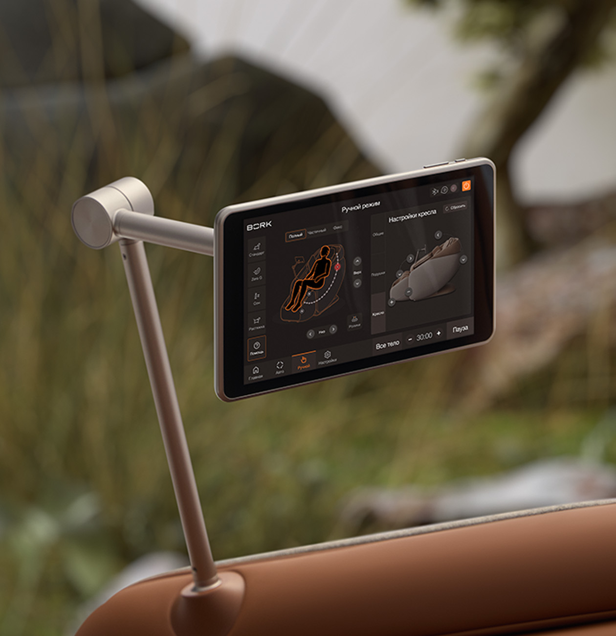 Все управление осуществляется при помощи планшета, на котором можно создать личный аккаунт с избранными режимами и персонализированными настройками. Для полного погружения в сеанс вы можете подключить по Bluetooth музыку, наслаждаясь любимыми композициями через встроенную стереосистему.