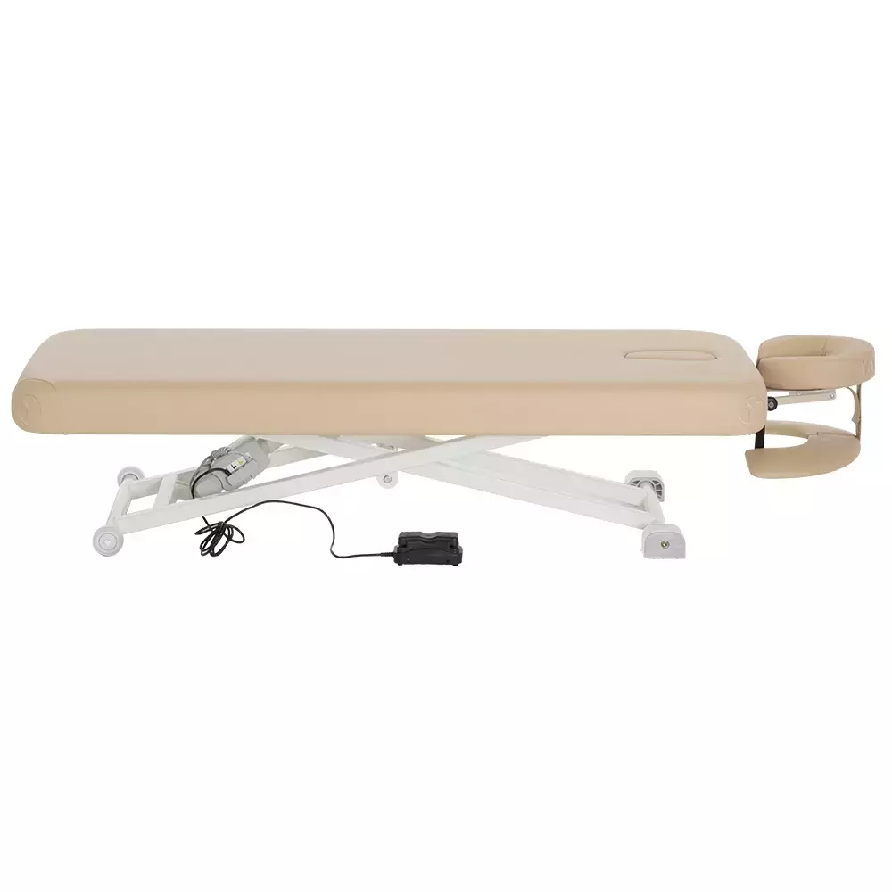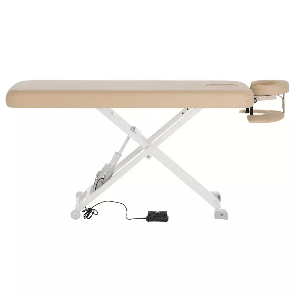 Высота массажного стола регулируется (44-98 см), что позволит подобрать оптимальное положение для проведения процедур. Регулировка высоты производится всего одним нажатием педали и позволяет сэкономить время и силы. Правильно подобранная высота предотвращает перенапряжение в кистях и позвоночнике при работе специалиста.