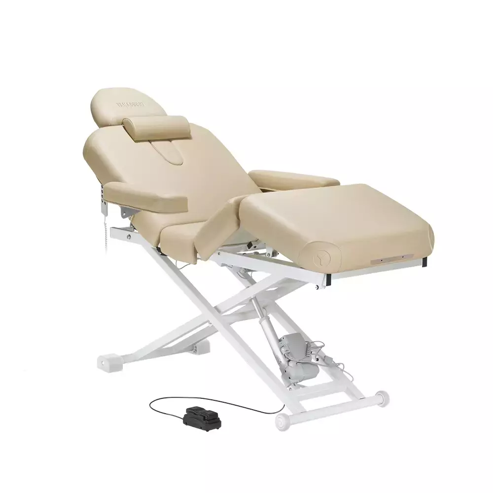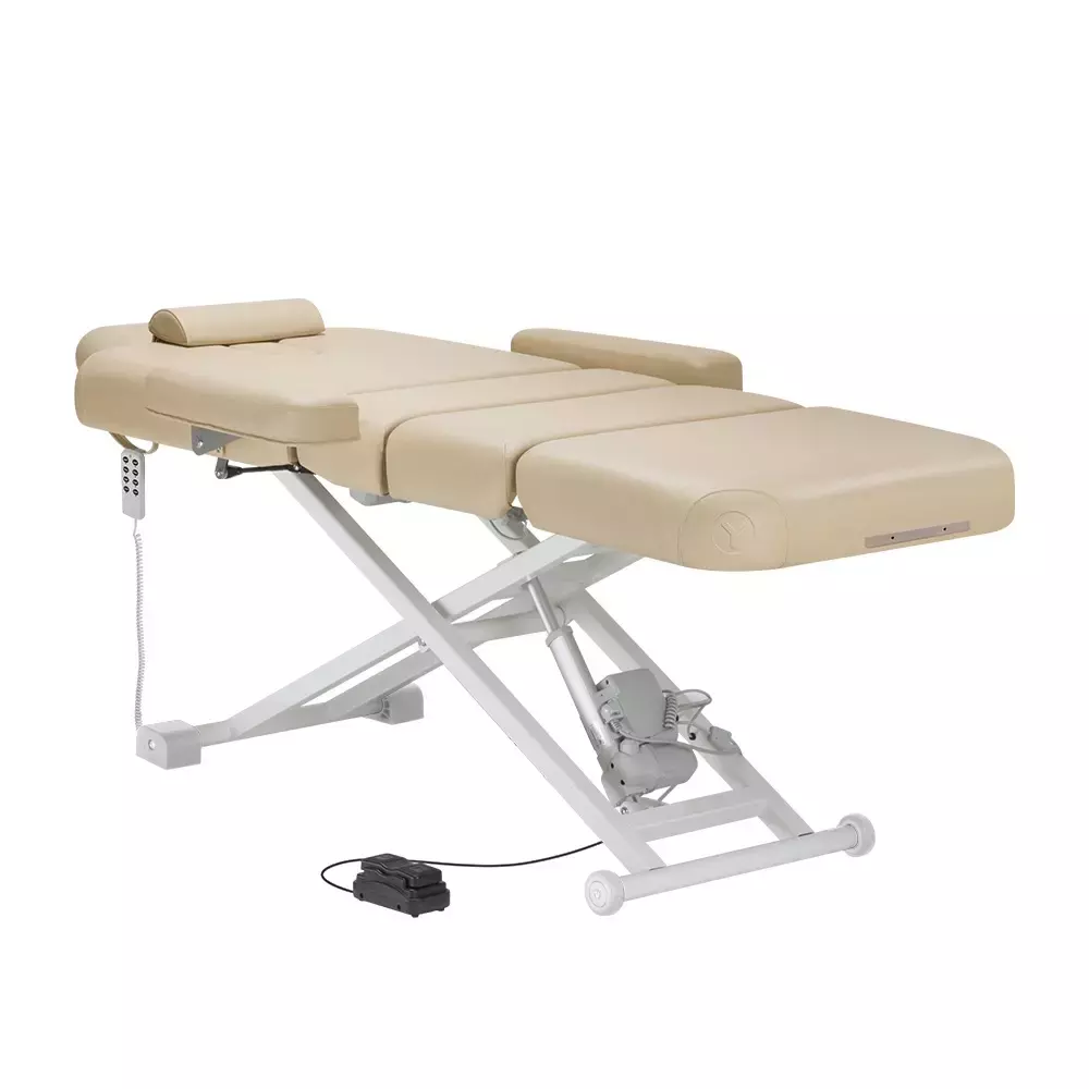 Секции для ног и спины регулируются при помощи пульта управления. Высота стола устанавливается с помощью кнопки пульта или специальной ножной педали.